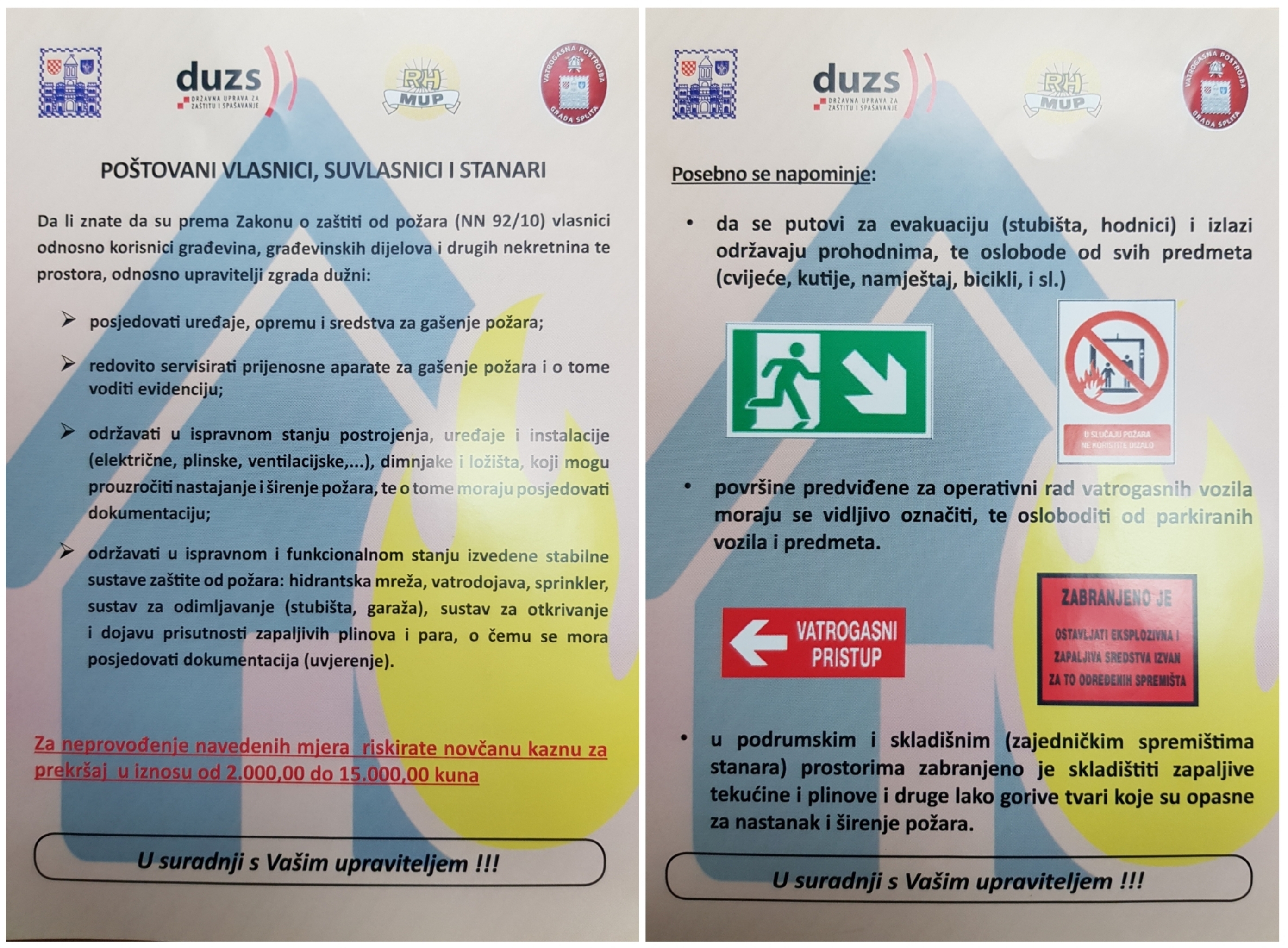 NOVI LETAK U VEZI ZAŠTITE OD POŽARA (za suvlasnike zgrada u Splitu)