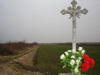 Na raskršćima cesta pa čak i poljskih putova u Slavoniji, ali i u Istri često stoje križevi uz koje netko donosi cvijeće. Kažu da je to preventiva, da se na tim mjestima ne bi sastajale vještice, vile i vilenjaci te kovali razne planove koji bi naštetili ljudima. Tko zna zašto, ali relativno često provezem se pored ovog mjesta iako mi baš i nije „na ruku“. Uvijek se prekrižim i poželim zaštitu za obitelj i sebe, da se sretno vratim s puta. To je put kojim je jedan čovjek iz malog sela u blizini odvezao kamion u Irak i ondje na ničijoj strani poginuo u tuđem ratu. U selu nedaleko tog križa nedavno je sebi bombom oduzeo život mladić koji je pisao pjesme i nesretno živio bez posla i primanja. U selu s druge strane puta imao sam prijatelja koji je navodno „prolupao“ i više s nikim ne komunicira kao prije. Bili smo nerazvojni i bio mi je kao brat kojeg u stvarnom životu nisam imao. Jedne zime u dane Božića više puta sam tu noću prolazio, a kad sam se vraćao sve je bilo zaleđeno u automobilu, pa čak i brave od vrata tako da sam jedva izašao. Bojao sam se da mi se auto baš na tom mjestu ne ugasi, na pola puta između sela, daleko od prvih kuća. Razmišljao sam o tome kako nije dobro sresti neznanog čovjeka na takvom mjestu. Prisjetio se dječačkih večernjih povrataka biciklom s kupanja na Orljavi, kada su mi u mrklom mraku psi dahtali po nogama koje su grčevito gazile pedale. Kao da sam obarao brzinske rekorde po drndavom putu bježeći od zvijeri koju nisam niti vidio, samo čuo njen lavež i zamišljao veličinu. Najgori je bio pas vučjak na Kovačevcu, koji je i po danu bio velik. Nisam pristalica postavljanja križeva uz cestu, na mjestima pogibije nekih ljudi. Pored tih križeva se ne prekrstim, ali zato to činim prolazeći pored crkvi i kapelica. To najčešće činim kad sam sam. Ako je netko još sa mnom u automobilu osjećam nelagodu, pa to nekada namjerno ne učinim. Na tom križu s fotografije katkada zna odmarati sokol, pa i druge ptice. S te visine pogledom love miševe s oranica, a kažu da veća ptica grabežljivica lako ulovi i zeca a i goluba. |