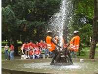 Maturanti su oduvijek bili originalni po dosjetkama i kojekakvim psinama u dane kada luduju odjeveni u razne uniforme i kada se daju oduška na kraju srednjoškolskog obrazovanja. Do ovih godina kupanje u fontani u parku bilo je standardno, no ove godine pobrinuli su se za čednost triju gracija, pa su ih u skladu sa zakonskim propisima vezanim uz prometovanje, odjenuli u svjetleće fluorescentne prsluke (iste onakve za kakve vas prometna policija pita da li ih imate kad vas eventualno zaustave). Bilo je dakako i kupanja, no ovo je baš originalno. Sasvim slučajno doznao sam da među našim maturantima ima i jedna blogerica koja katkad ovdje svrati. Maturanti su baš super ove godine, kako u Novoj gradiški tako i u Brodu. Dok su u našem gradu robijaši, konobarice, pionirke, u Brodu su pčele, bubamare, srednjovjekovna gospoda, itd. Nek' im je sretno! |