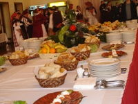 Koliko su janjaca, praščića, pa katkad i stoke krupnog zuba izjeli uglednici u raznim prigodama na raznim domjencima? Nekad je bila jedna partija i razni socrealistički praznici, Dan ovakve borbe, Dan bitke na ovom ili onom mjestu. Danas su državničke i službeničke svečanosti, gledano kalendarski, vezane uz drugačije datume. Valjda su nekad i prvi ljudi imali slavlja ( uvijek se zdušno krkalo)? Možda kad je ubijena neka životinja ili kad je padala kiša? Svagdje diljem Svijeta ljudi vole jesti u zajedništvu, što je znak zbližavanja, jačanja povjerenja i tko zna čega još. Famozna riječ „reprezentacija“ ne koristi se više kada mislimo primjerice na našu izabranu nogometnu vrstu, nego na to koliki je nečiji fond za potrošnju pića, jela , itd.( što već piše u Kontnom planu taksativno nabrojano). Domjenke imaju i manekenke, pa se mora paziti da se ne servira teška i „jaka“ hrana. Nogometaši „Dinama“ su za svojedobnog boravka u Rešetarima tražili da se servira puno svježeg voća. Na moru je nezamislivo bez ribe, maslina, lignji, dagnji,… U Slavoniji „švedski stol“ radije zovu „slavonski stol“ i to zbog kobasica, šunke, kulina. Zagorci koliko sam mogao vidjeti preferiraju perad na domjencima. Bilo je ondje puretine i piletine na razne načine. Na fotografiji vidite dio ponude na novogodišnjem domjenku kojeg je organizirala Županijska uprava BPŽ. Domjenke mnogi doživljavaju tek kao predigru, a oni lakomiji kao slobodu koja se može mjeriti s onom koju doživi pas kad ga pustiš s lanca. Na jednom domjenku u Šibeniku skoro sam ostao „kratkih rukava“ jer su sudionici Radijskog festivala toliklo navalili da su „i laktovi radili“. Dok si trepnuo bio je čistac, a rižotu odi sipi i ostalom ni traga. Ostala tek pokoja fritula. Da ne bih više fantazirao ovako gladan, odoh na ručak i lijepo vas pozdravljam ( sam sam sebi otvorio apetit). |
