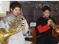 U osnovnoj školi sam počeo svirati u limenoj glazbi vatrogasnog društva. Plave uniforme, državni praznici, sprovodi, kiša, sunce, koračnice i posmrtne skladbe, ali i onako „za gušt“ i sviranje njemačkih valcera i obrade klasičnih kompozicija i evergrina. Kad su se na početku dijelili instrumente, meni je zbog visine pripala velika truba (bariton sa 4 tipke), a toliko sam želio biti „prva truba“ tj. svirati vodeći instrument džez trubu ili saksofon ili klarinet. Još sam dobro i prošao, rekli bi neki, jer sam mogao dobiti i primjerice B-bas (najveći od svih truba). Bilo je to lijepo vrijeme upoznavanje glazbe i ljudi, dragocjenih iskustava i zanimljivih događaja. Članovi tadašnjeg orkestra sada su obiteljski ljudi, vojni časnici u mirovini, poljodjelci, intelektualci, sveučilišni profesori, novinari, odvjetnici i tko zna što sve ne, a nažalost nekih više nema među nama. Neki su poginuli u nedavnom ratu, a neki i preminuli ovih godina. Sjećam se nekih frapantnih detalja iz te najranije mladosti, pa mi je i moj bivši nastavnik iz osnovne škole rekao kako ne može vjerovati da se ja toga tako detaljno sjećam, jer sam tada bio malo dijete (spomenuo sam mu detalje u svezi njegovo Zaporožca (auta) i male vjeverice koja je jednog dana izgrebla njegov namještaj kad je pobjegla iz malog kaveza). Marširali smo uvježbani korak i istovremeno svirali koračnice tako da kad sam kasnije došao u vojsku, ja sam takozvani strojevi korak već itekako dobro znao. Sprovode smo doživljavali kao teret, a stari glazbenici iz orkestra kao prigodu da popiju pokoju više i dobro se najedu pečenke sa karmina. Ja nisam mogao nikad jesti po sprovodima, kao i većina mojih vršnjaka. U bivšem socijalizmu svirale su se budnice u dane državnih praznika, a nešto slično se i danas događa (samo što je repertoar koračnica tek nešto drugačiji). I onda i sad se svira primjerice meni vrlo draga kompozicija „Kroz splitske kale“ gdje sam u takozvanom triu imao solo kojeg još uvijek pamtim. Kad bolje promislim i sad bih vam mogao odfićukati svoje melodijske dionice u pogrebnim skladbama kao što su: „K vječnom snu“, „Posljednji put“, „Posljednji pozdrav“ ili „Lenjinov posmrtni marš“. Možda zvuči pomalo morbidno, ali te „pogrebne skladbe“ imaju pregršt lijepih sjetnih melodijskih linija koje dočaravaju tugu i žal i na neki način mi se sviđaju. Ipak čvrstog sam stava da u svom sprovodu, ne bih volio imati ti limenu niti bilo koju drugu glazbu. Smatram da je tišina dostojanstvenija od bilo koje glazbe, posebno u tim slučajevima. Nedavno sam upoznao drage i simpatične glazbenike iz Požege koji pomoću limenih instrumenata sviraju simfo-rock. Oni se zovu „We come one“ i naprosto su me oduševili. Fotografija je snimljena na njihovoj probi u Trenkovom domu u Požegi. Dečki su me podsjetili na moju staru ljubav prema trubama i limenoj glazbi. Poželio sam ponovno s njima zasvirati, ali ambažura ( rad jezika i usnica pri proizvodnji zvuka) mi nije više jača strana. Da se usilim, brzo bi ja obnovio to znanje. To je kao vožnja bicikla, kad jednom naučiš, ne zaboravljaš. |