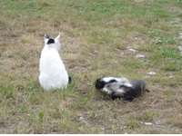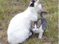 Već smo posumnjali na duhove, na tvorića, slijepe miševe, sovu, parcove, golubove i neželjene manijake (kada je riječ o noćnoj lupi na našem tavanu), kad ono mačka omacila dvoje mačića koji su pogotovo pred jutro pravili pravi lomazak. Ovo je prvi put da se to dogodilo na tavanu naše kuće (katnice), i zanimljivo je kako je mačka odabrala zapravo vrlo sigurno mjesto. Sve nas je zanimalo kako će mačiće skinuti dolje u dvorište. Nakon što smo ih vidjeli jednog dana kako proviruju ispod crjepova, počeli su i skakutati po krovu sa svih strana. I došao je trenutak silaska. Mačka je išla prva, a za njom i mačić kojeg vidite na slici. Onaj drugi (crni) okolo se zafrkavao dok su ovih dvoje silazili jedinim mogućim putem, jedno za drugim. Kad je shvatio da je ostao osam na velikom krovu, taj malac se odlučio skočiti na pogrešan krov, s kojeg mu je previsoko doskočiti na travi, pa bi morao skakati na beton. Nastala je mačja dreka. Stara mačka i mačić su dozivali crno mače koje se deralo na drugom krovu. Domišljali smo se kako im pomoći. Otišao sam po ljestve, „jarac“ i dvije fosne, pa sam mu napravio skelu da može sići. Cijeli dan smo gledali kako stara mačka hoda po skeli i zove crno mače da krene za njom, U jednom trenutku to se i dogodilo. Sad se svi zafrkavaju na travi u dvorištu, a mi razmišljamo kog će nam vraga još to dvoje mačića koji su svakim danom sve pitomiji. Najprije su bili kao divlje zmijice, samo su siktali i htjeli grepsti, a sada su mirniji i dolaze se hraniti s mačkom. |