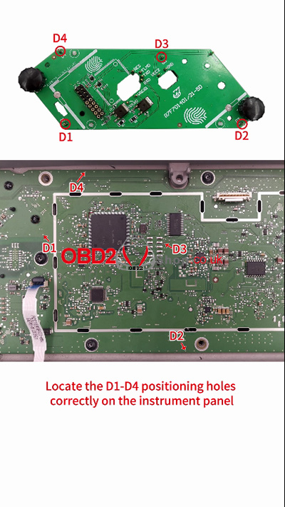 2. Then remove the corresponding two screws, and locate the D1-D4 positioning holes correctly on the instrument panel.