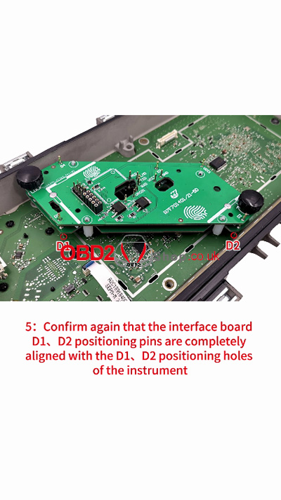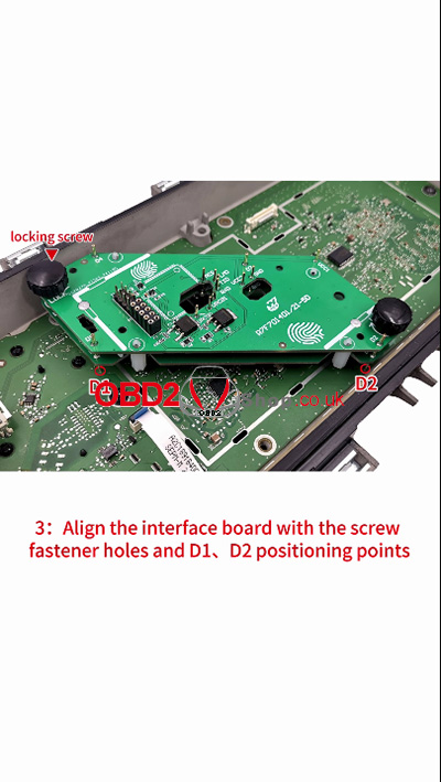 3. Align the interface board with the screw fastener holes and D1, D2 positioning points.