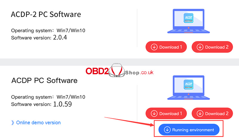Solution: Download the "Running environment" in the picture, unzip it, and install the program. Then you can use the ACDP 2 app normally.