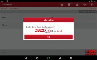 The dealer key is generated successfully.