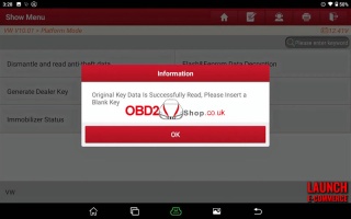 The original key data is successfully read. Please insert a blank key.