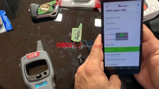 1. Place the VVDI super chip into the coil area of the VVDI MINI Key Tool.
