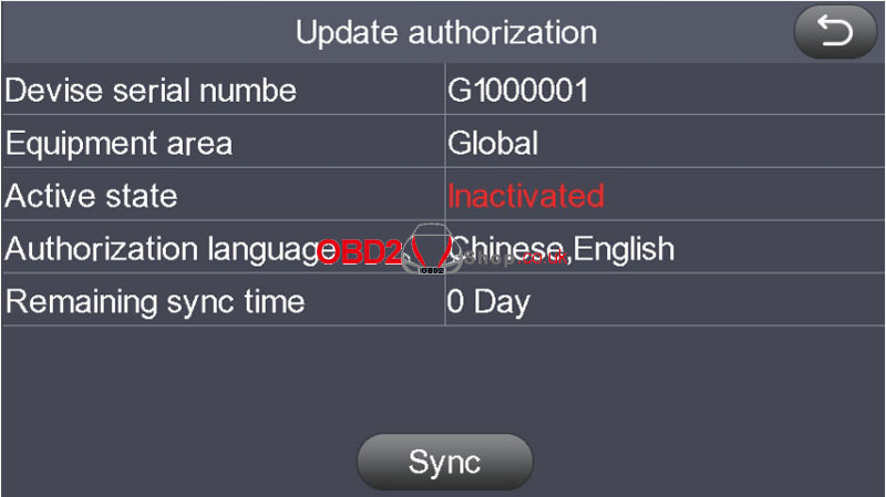 2. When you use the equipment for the first time, you need to connect the equipment to the Internet and activate it so that the function can be used normally. Click the [Authorization] button on the main interface to enter the activation interface, and then click the [Equipment Sync] button to activate the equipment.