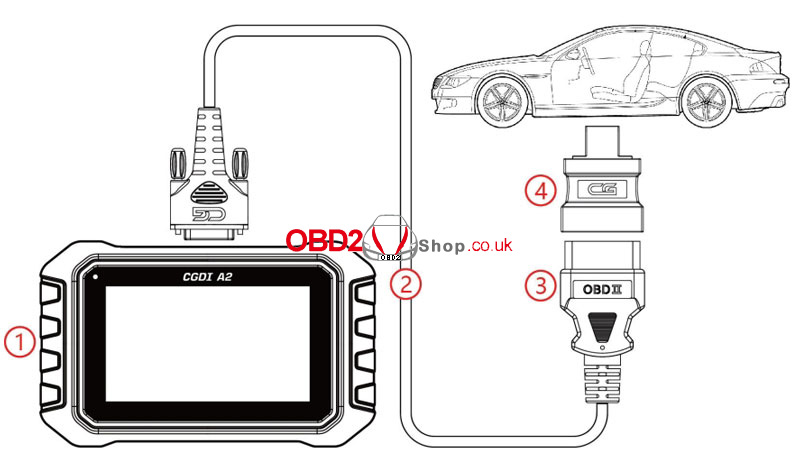 3. To execute the anti-theft matching function, you need to use the CGDI A2 dedicated OBD main line(some vehicles require a dedicated OBD adapter) to connect the car's OBDII diagnostic interface, and select the corresponding model to perform anti-theft matching-related operations.