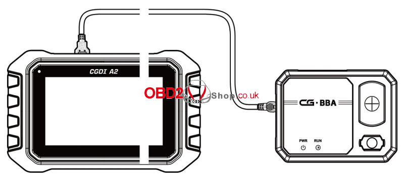 4. When the functions of some models(such as Volkswagen and Mercedes-Benz) require the use of a BBA programmer, a Mini-USB cable can be used to connect the CGDI A2 host to the BBA programmer.