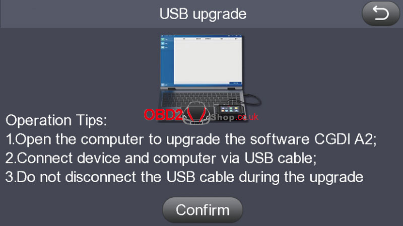 5. CGDI A2 comprehensive anti-theft matching equipment can be upgraded through [Update] - [USB connection to computer].