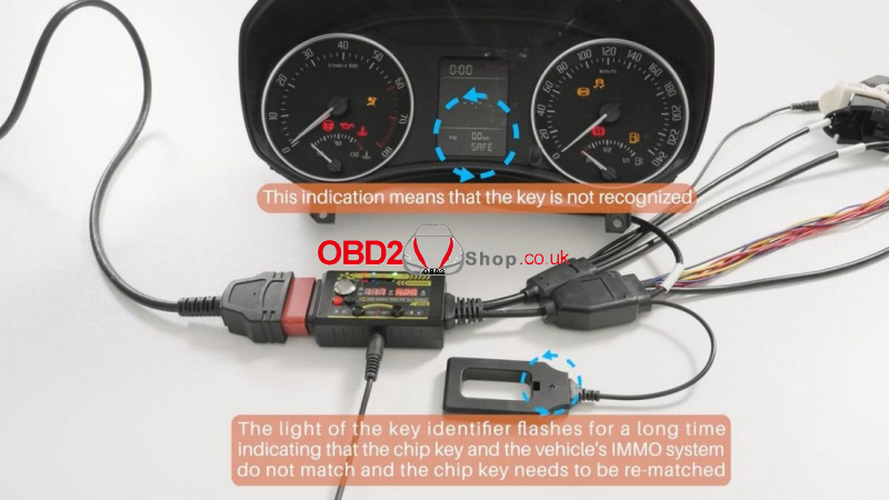 Step 3: The instrument panel displays safe, and the key sensor coil flashes for 3
