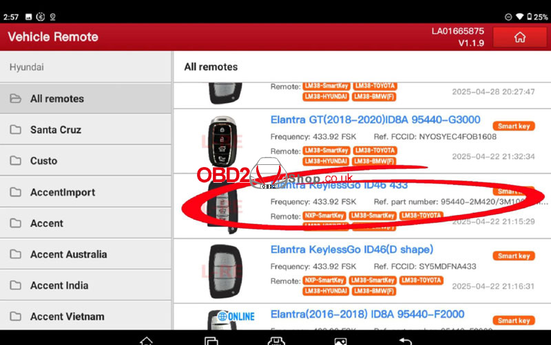 Vehicle Remote >> Hyundai >> Elantra KeylessGo ID46 433