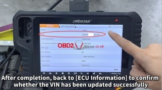 Go back to [ECU Information] to confirm that the VIN has been updated correctly.
