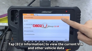 Tap [ECU Information] to view the existing VIN and other vehicle data.