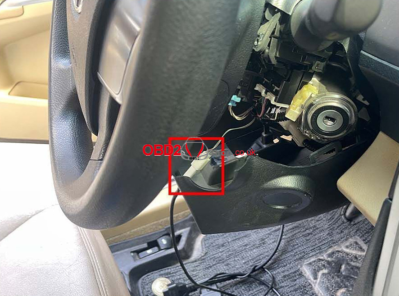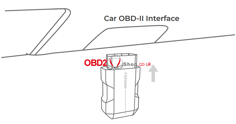 Locate the vehicle's OBD-II port, which is typically found under the dashboard. Plug the TopScan Pro device firmly into this port.