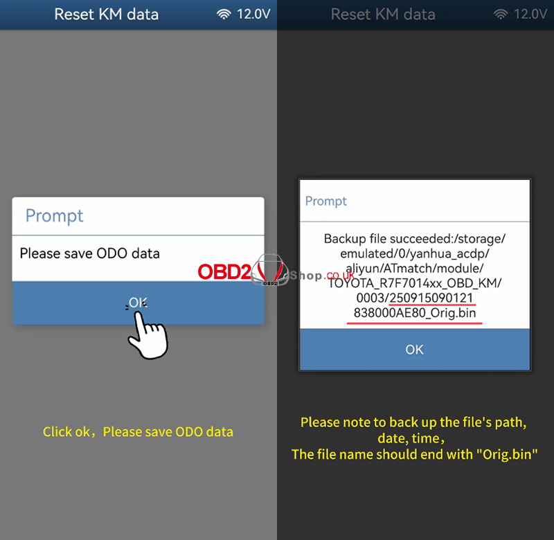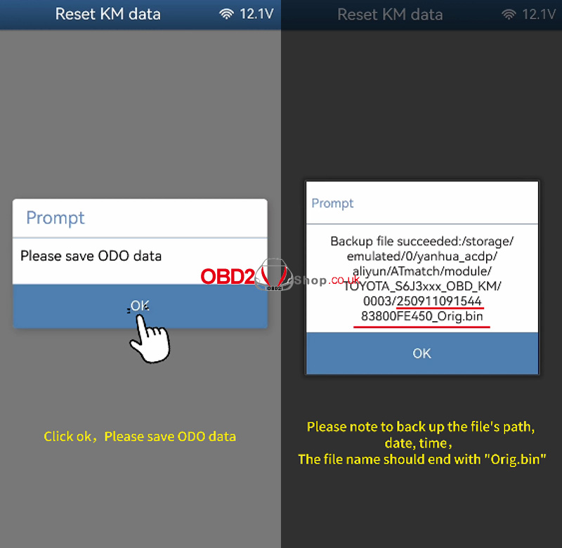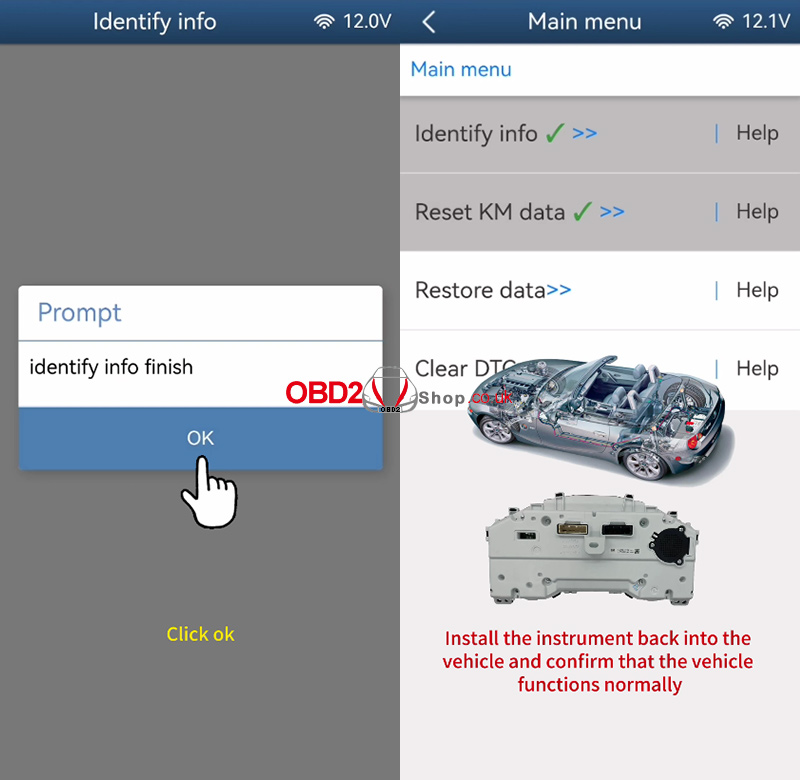 Turn off the dashboard and wait until communication with the ECU ends, then press OK.