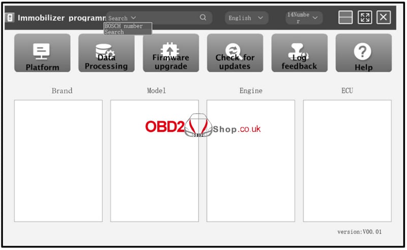 2. Alternatively, you can search directly using the search box. Enter relevant information such as Brand, Bosch ID, or ECU type.