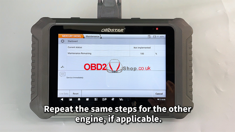 With the OBDSTAR MarineMaster, resetting the maintenance reminder on a Mercury Diesel engine is quick, accurate, and user-friendly. This tool provides clear on-screen instructions and supports professional marine diagnostics and service tasks.