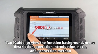 Tap [Guide] to view detailed information about the function background, menu descriptions, operation introduction, notes, and connection methods.