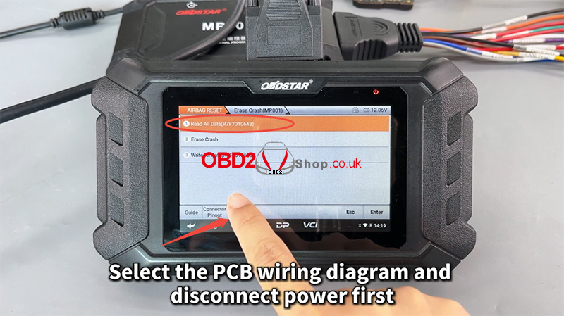 2. Power Down: Tap [PCB Pinout] to view the diagram, then disconnect power to the ECU.