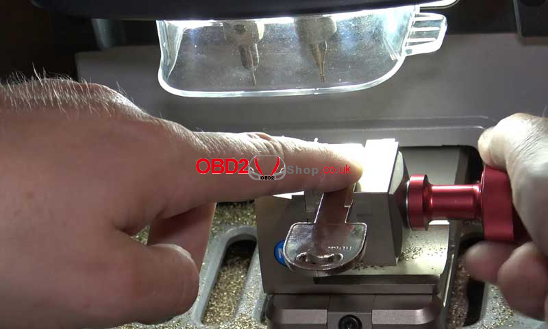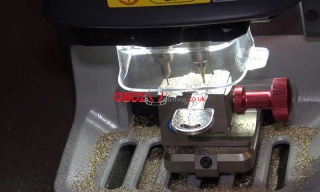 Place the HU66 key blank flat and secure it in the clamp