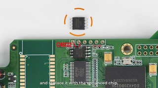 1. Remove the existing chip: After exposing the front side of the board, gently detach the original chip using appropriate tools.