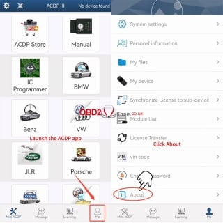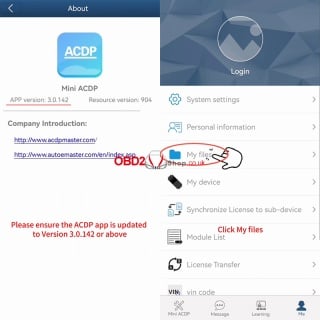 Ensure your ACDP application is updated to Version 3.0.142 or above. Launch the app and navigate to the [Me] tab, then tap [About] to verify your version.