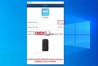 3. Confirm that your ACDP1 or ACDP2 PC version meets the required update level.