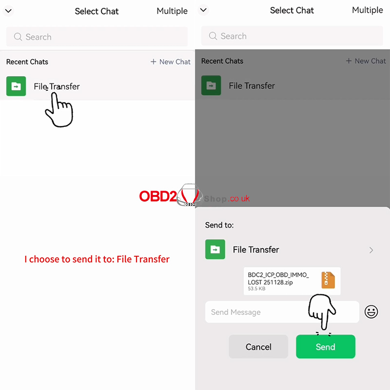 You can now export the file using any third-party application. This tutorial uses WeChat as an example—simply select WeChat and send the file to a contact or group.