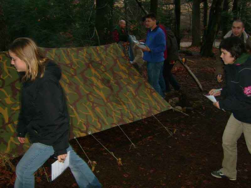 U petak su na rasporedu bile olimpijske discipline… sve smo pročešljali teoretski a koliko nam je kiša dopustila smo probali i praktično…pa smo tako napravili poligone za paljenje vatre, dignuli smo šator, a bogami smo radili i zaklone!! Podijelili smo se u 2 grupe i onda smo jedni drugima ocjenjivali zaklon...khm khm…tek kad pred sobom imaš tablicu i vidiš šta jedan dobar zaklon mora zadovoljavati shvatiš da ne bi baš volio spavati u onome što si napravio