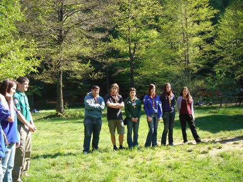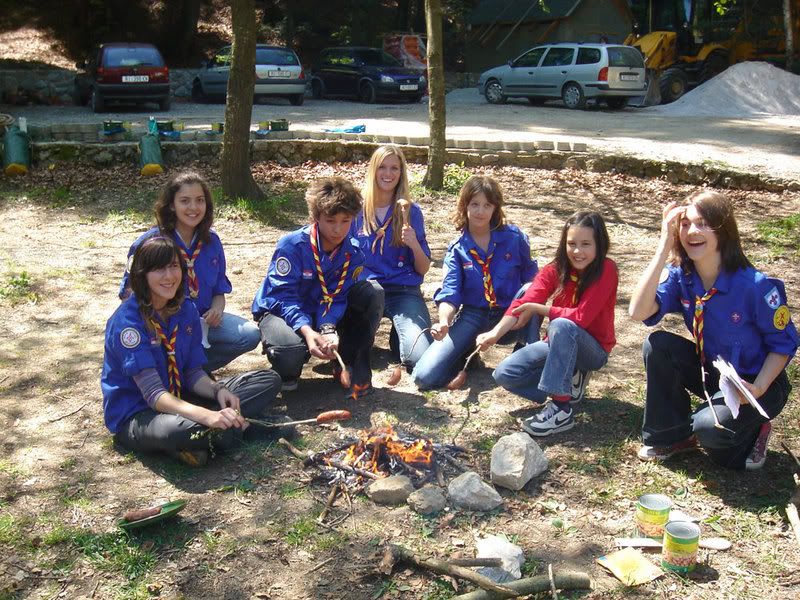 Iskrcali smo se ispred hotela Zagreb tako da smo morali još malo pješačiti do samog Bundeka gdje je bilo Zborovanje. Moram priznati da nas je bilo lijepo za vidjeti... A još lijepše kada smo iz sveg glasa zapjevali Šuma, potok i vikali Alabio! - tako da svi znaju da smo stigli... Smjestili su nas na naš komad livade gdje su brđani odmah počeli dizati brđansko-istraživačke šatore u krug, a ostali su krenuli na svoje aktivnosti - poletarci na Proljetne igre, a izviđači na Sportske susrete (tu još jedna pohvala - kako je vođa družine imala drugih obaveza - njena patrola se bavila organiziranjem i zabavljanjem članova - svaka čast Juckelle!! ). Da ne misle da sam ih zaboravila, ekipa Opet najbolji u sastavu Boki, Sale, Tamara, Eva i Nataša je krenula na Državnu izviđačku olimpijadu...