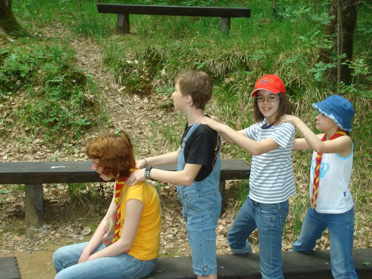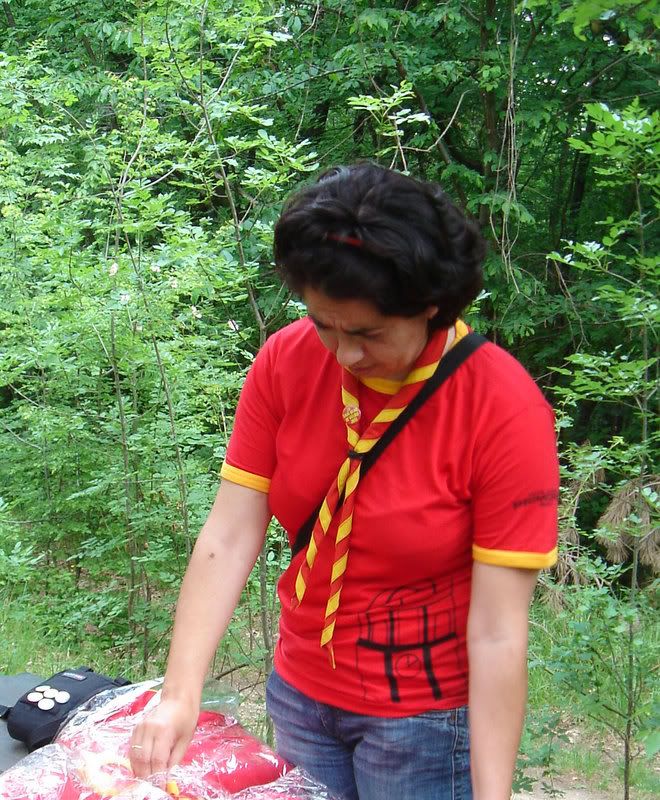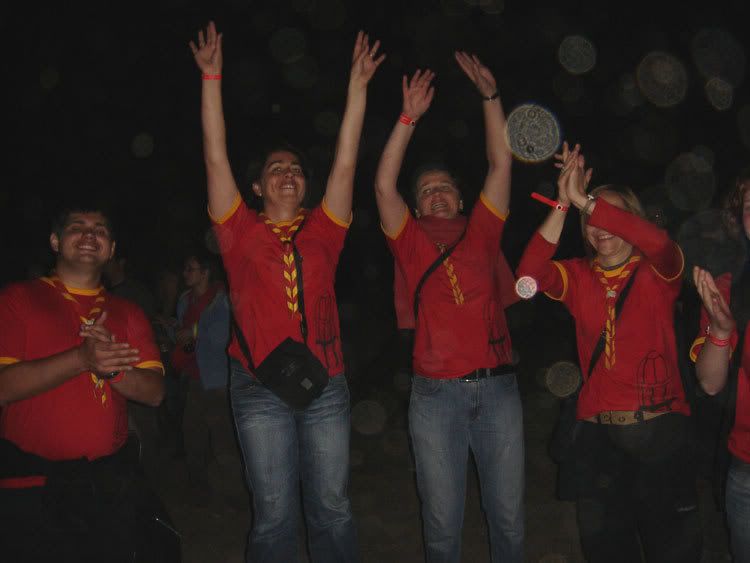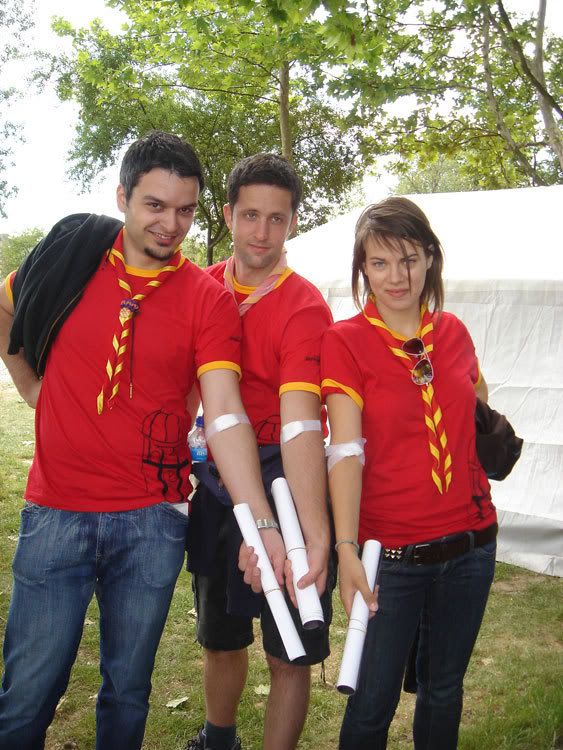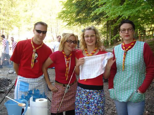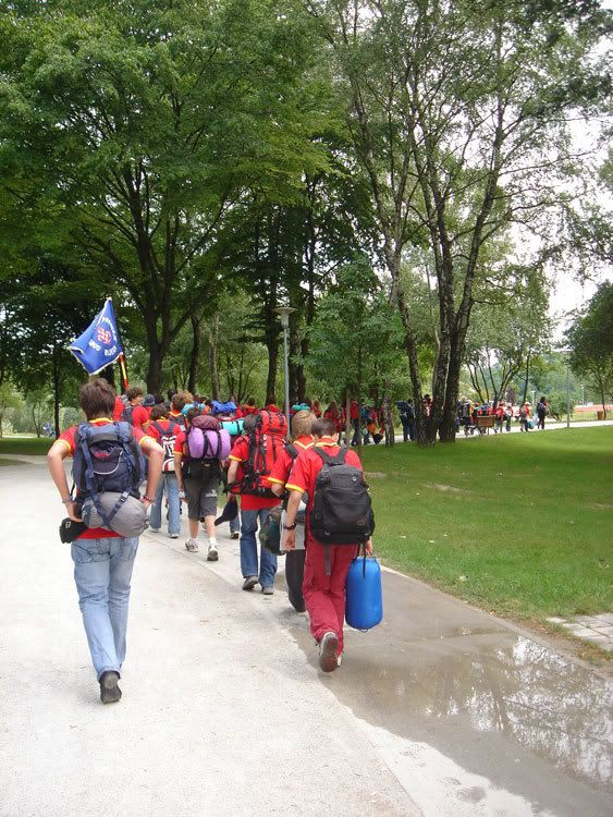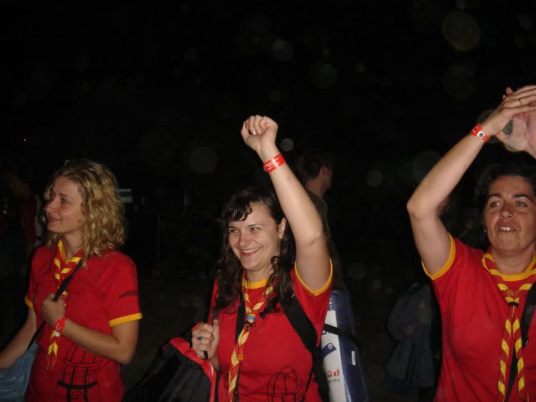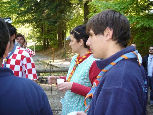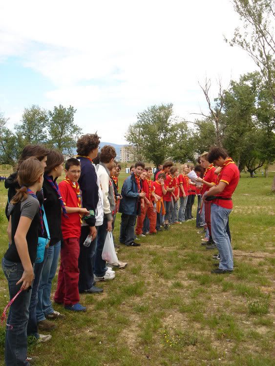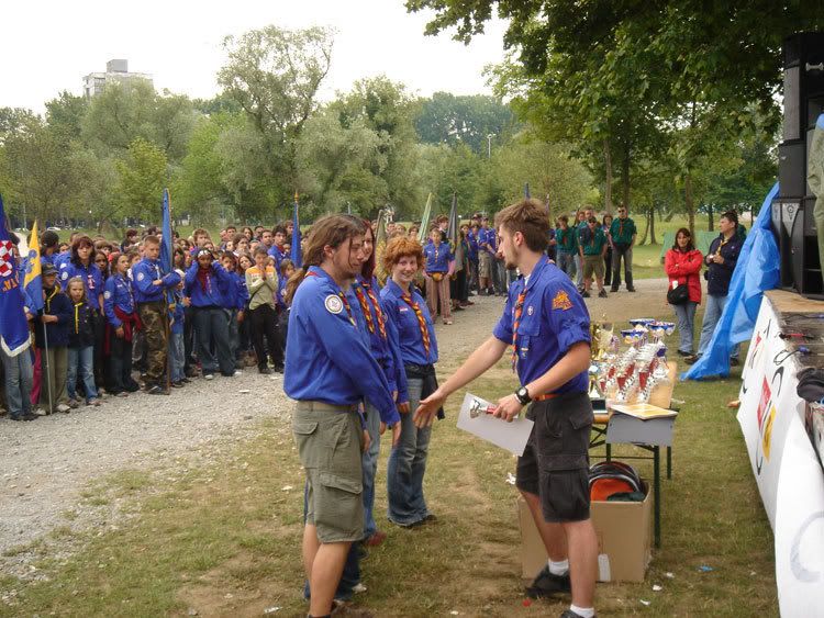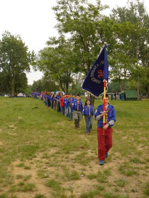 Spremili smo većinu stvari te se postrojili u uniformama za otvaranje - i nismo stali u kadar, pa sam slikala u tri dijela - prvi dio, drugi dio i treći dio... Lijepo... I krenuli sa zastavom na čelu na proglašenje pobjednika Olimpijade i zatvaranje Zborovanja. O samom DIO-u će (nadam se) više napisati sami sudionici (čim napišu izvještaj sa Memorijala burninmad), a ono što mogu ja reći je da su osvojili 5. mjesto - i to na moju nesreću i sreću... Naime, pokrenuli smo tjedan prije u odredu malu internu kladionicu koje će mjesto zauzeti... Jedino smo Nevena i ja rekle 5. mjesto - i to je bio najniži plasman što im je itko dao - tako da se potvrdila sumnja da smo nas dvije odredske vještice i od sada pazimo na logoru da ne završimo na zadnjoj vatri kao "dodatak" pagodi - kao u srednjem vijeku (Nevena- javi se da se dogovorimo oko reprezentacije... naughty)