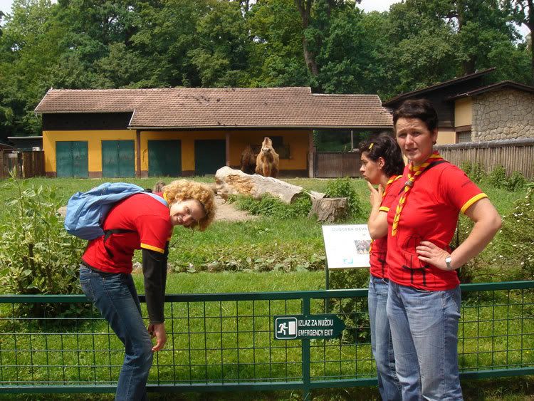 Nakon zatvaranja su autobusi došli po nas te smo krenuli za Maksimir i ZOO... Nakon malo zabavne vožnje obližnim uličicama u potrazi za parkiralištem za autobus (koje je bilo odmah preko puta ulaza) sretno smo se iskrcali i krenuli po patrolama u zološki... Samo neki su umjesto životinja odabrali ćevape (i sada im je žao...) Svaka patrola je imala za cilj vidjeti baš tu životinju, a Veli Jože se nakon brzinske kave uputio u potragu za ljamama... Nažalost, nismo ih našli pa smo se zadovoljili slikanjem s devom i u homo sapiens kavezu... I Cilju je posebno mučilo što Gibonni radi u zološkom...