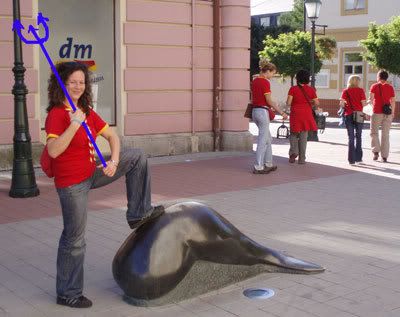 Prvo smo išli u Olimpijski centar - popeli smo se na ogroman toranj s kojeg puca prekrasan pogled na cijeli Munchen, obišli BMW muzej, rock muzej i još svašta... Ostatak dana smo proveli šalaplasteći (ne znam jel' se ovako piše) po tom veeelikom gradu... ali jako lijepom - punom gastarbajtera... Imamo i slike "naših" trgovina... Popili smo pivu u ogrooomnoj pivnici u koju stane preko 1000 ljudi... (i to vjerovatno velikih pivopija, a ne žgoljavih kao što smo mi...