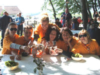 NEDJELJA: Buđenje I sređivanje. Danas nas čeka obilazak Daruvarskih vinograda. Šteta je biti tako daleko od kuće, a ne kušati graševinu. Krenuli smo u koloni od cca 30 vozila do vinograda. Vožnja je poprilično potrajala. Stigli smo u vinograd u kojem su nas dočekali domaćini i krenuli na kušanje vina (graševina 2001, graševina 2004., graševina 2005., graševina 2007., rizling iz ne znam koje). Vratili smo se u ŠRC Kukavica na proglašenje. U autu smo prognozirale plasman i to su uglavnom bila mjesta od 3-7 mjesta. Skromno. Na svu sreću nitko nije pogodio jer smo osvojile 2. mjesto. Tik iza ekipe Prepotentni iz Uprave Sih-e. Na samom zatvaranju 5. Susreta doznali smo i slijedećeg organizatora, a to je Klub brđana Cairos iz Trogira. Prije povratka za Rijeku valjalo je malo prezalogajiti, pa su organizatori Klub brđana Zmaj pripremili ručak (svinjče i janjetinu), za Vesnu njoke. To nije bio kraj. Kraj je bio sjedanje u auto, Ajmo Rijeka do daske i osmice po igralištu. Bio je to još jedan susret koji će se pamtiti i prepričavati. Nama se desilo toliko lijepih, zanimljivih i dobrih stvari da je teško o svemu sve napisati. Znamo jedno da ćemo dogodine u Trogir.