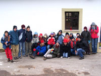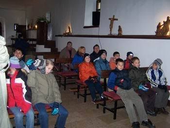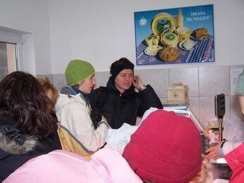 Ubrzo (???) smo stigli na prvo odredište - Krasno. Krasno je krasno mjesto u kojem se nalazi i Uprava NP Sjeverni Velebit. Odmah smo navukli na sebe sve što smo imali u ruksacima, pa su neki izgledali apsolutno neprepoznatljivo (tko je ovo uopće?). Okruženi snježnim vrhovima Velebita, žurnim korakom smo se uputili prema Muzeju šumarstva gdje smo mogli vidjeti kako je izgledao posao šumara i šumar u prošlosti i danas, upoznati biljni i životinjski svijet Velebita i još puno, puno toga. U Upravi NP odgledali smo multimedijalnu prezentaciju o geologiji, flori, fauni, ljepotama i zaštićenim područjima NP. To nam je jako razveselilo jer smo mogli skinuti sa sebe par kila robe. Dok smo čekali nastavak puta, malo smo i prezalogajili. Brđani su još našli i malo vremena da posjete obližnju siranu i kupe krasnarski sir. Nastavili smo put te ubrzo (ovaj put stvarno ubrzo) stigli na brežuljak gdje se nalazi svetište Majke Božje od Krasnog. Nekako nas ipak malo više od svetišta zainteresirao snijeg (istini za volju, u minimalnim količinama, ali SNIJEG), naročito neke od nas.