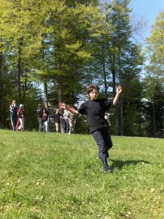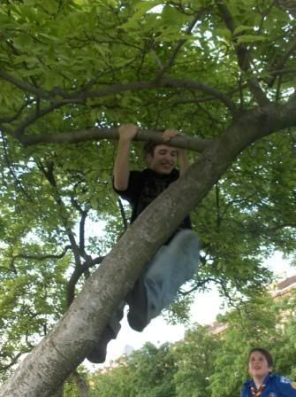 Kad smo došli u Zagreb smo trebali ići tramvajem i busom do Sljemena, ali su se dobri dečki iz Bistre sjetili da nas voze autima, tako da smo ih onda trebali malo pričekat dok nisu došli po nas. Pa smo se smjestili u park kod kralja Tomislava, malo vidjeli što se novog dešava u svijetu i odmarali se. Ali samo pet minuta, jer je onda odjednom svima postalo dosadno pa su se počeli ponašat kao da su pušteni s lanca. Dok su dečki izvodili svakakve vratolomije, cure su se popele na stablo, a onda je naravno i Igor morao vidjet šta ima gore. I tako je to trajalo dok nije došao barba policajac i pitao otkud smo mi došli i rekao da se malo smirimo... (Nadam se da ovo neće čitat baš previše roditelja.) ;)