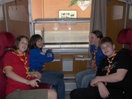 Ovaj put boje odreda branile su (a i obranile) dvije ekipe - Jednorog i Plava munja. Krenuli smo u petak rano popodne, tako da smo se uspjeli i naspavat, ali ipak je su neki još malo odmarali u vlaku. U biti, ono što nas je izmorilo je to što smo išli najprije vlakom, pa busom, pa vlakom, pa busom, pa vlakom! Doslovno! Ali svejedno smo se uspjeli malo i zabavit između svih tih presjedanja, pa čak i slikavat. A u Ogulinu nam se priključila i Eva, koja je odlučila ić s nama u sklopu svog višednevnog pohoda na plannu (dva n, bez i). :)