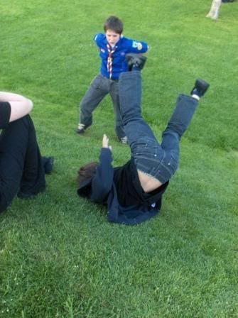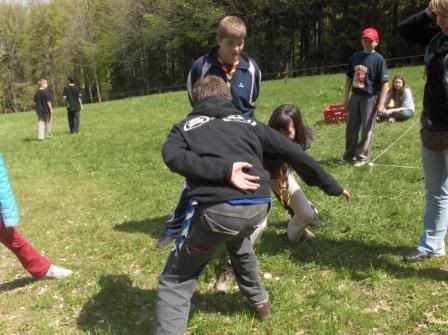 Poslije toga bilo je par sportsko - zabavnih disciplina, kao što su tronogo trčanje, otimanje marame i na kraju scoutball. U scoutballu su obadvije ekipe bile super i igrali su svi kao ludi.