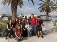 Krenili smo u četvrtak oko 7 i po iz Rijeke, a došli smo u Split u 7 uri ujutro. U vlaku smo čuli gas pa smo složno zapivali „Joj, što volim miris kamiona“. U najlipšem gradu na svitu dočeka nas je Vule s kombijen i preveza nan je stvari u SK Split. Bija je tu i naš prika Malki koji nas je vodija na kavu na štekatu na teraci. Prošetali smo i splitskon Rivom, di je smrad ka na Mrtvom kanalu, a pari nan se da i gori. Kad smo vidili more i Dalmaciju potekla nan je suza. Nama je Dalmacija i more ka mati, a kad vidimo mati se rasplačemo pa smo se rasplakali i kad smo more vidili (a to je i normalno jer mora nismo vidili cili dan).