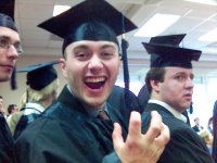 Gospodo draga, postao sam službeno i diplomant!Što god vam to značilo...Dakle, pozvali oni mene iz vojske da navratim na faks, ja došo u odijelu (skoro sam došao u trapericama i majci, formalni izgled mi baš i ne paše), a oni mene obukli u nekakvu tamnoplavu togu i stavili mi tupavi šešir na glavu. Pa ti sad izgledaj normalan!!!!! Posljedice su vidljive na slici koja je u privitku. Nda, dobio sam i diplomu kojom mogu obrisati guzicu...ili se nedajbože negdje i zaposlim!Živi bili pa vidjeli. Ah da, još samo 20tak dana u HV-ju. Imam samo o tome reći ovo: B R O J I M S I T N O !!!!!!!!!!!!!!!!!!!!! |