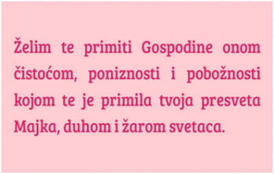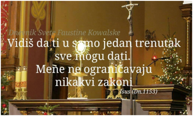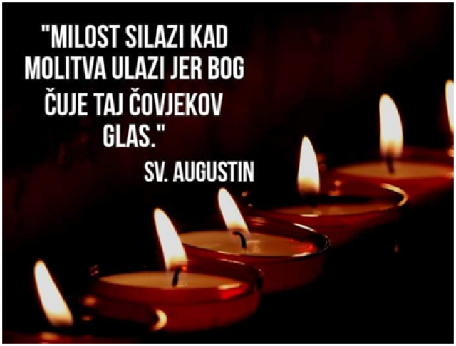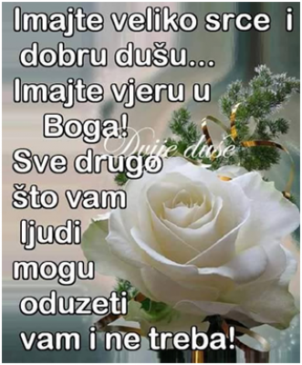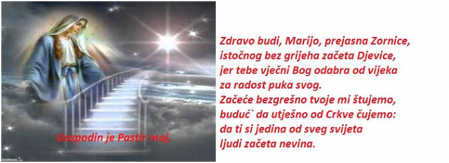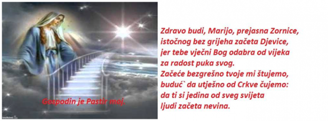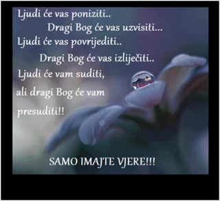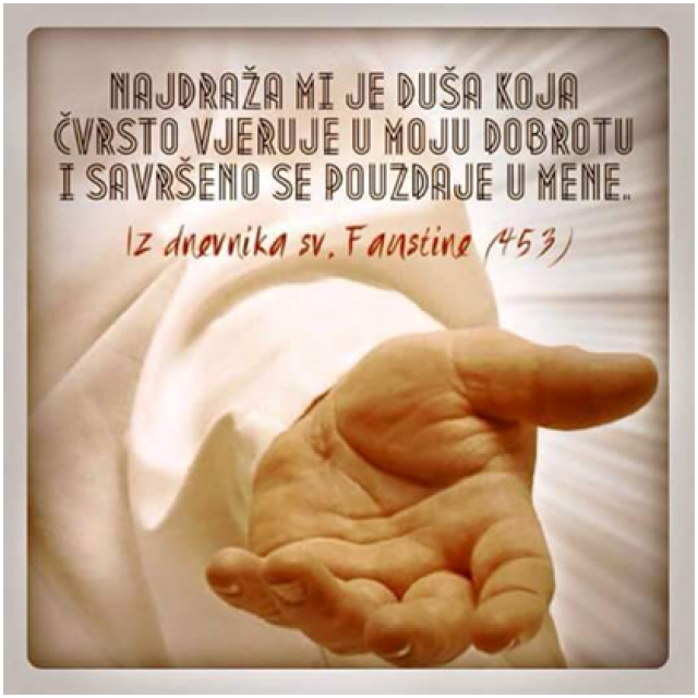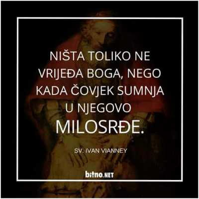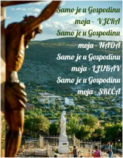 5.58 sati 'Neka vam bude po vašoj vjeri!' Ali Gospodine zar nije bolje da mi bude po Tvome milosrđu? Sve najvrijednije od Tebe što si mi dao, zar po Tvome milosrđu nisam primio? Gospodine ovo sam što jesam samo zato što si imao apetita ući u život ovce ove. Glupe, tupe, neupotrebljive. Koja nije bila dostojna ni da je se ni štapom dira. A Ti si je u njedra primio i posvojio. Pa je ona sada kako spada Isusova ovca = isusovac. Sjeti se to je ne po svojoj vjeri nego po Tvome milosrđu: HVALJEN ISUS I MARIJA. Haj, zdravi i veseli bili!