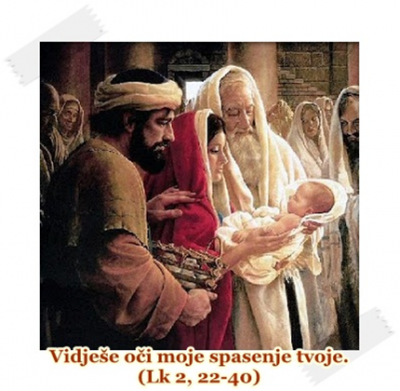 U ono vrijeme: Bijaše neka proročica Ana, kći Penuelova, iz plemena Ašerova, žena veoma odmakla u godinama. Nakon djevojaštva živjela je s mužem sedam godina, a sama kao udovica do osamdeset i četvrte. Nije napuštala Hrama, nego je postovima i molitvama danju i noću služila Bogu. Upravo u taj čas nadođe. Hvalila je Boga i svima koji iščekivahu otkupljenje Jeruzalema pripovijedala o djetetu. Kad obaviše sve prema Zakonu Gospodnjem, vratiše se u Galileju, u svoj grad Nazaret. A dijete je raslo, jačalo i napunjalo se mudrosti i milost je Božja bila u njemu.