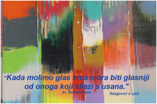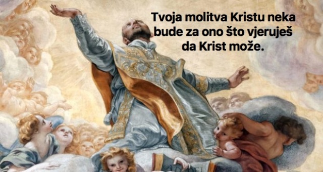 'Lujo ki vojnik Kristov tribaš zapet iz petnih žila, i dna dubine duše svoje, od srca bezglasno vapit Kristu kralju da ti pomogne.' Aha dide toj mislena molitva.
