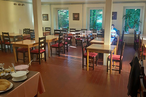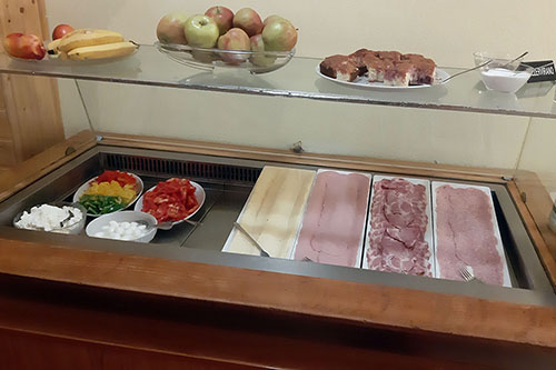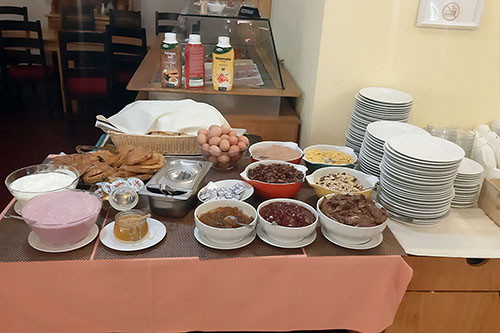 Mladu ženu koja tu radi (kuharica, spremačica, što li je!?) upitah da li mogu dobiti kavu, na što ona potvrdo odgovori. No, kada sam ugledao švedski stol upitah da li možemo doručkovati, na što ona odgovori da će nas to zadovoljstvo stajati 10 €. Bez trena razmišljanja izvadih 20 eurića te otrčah gore po suputnika.