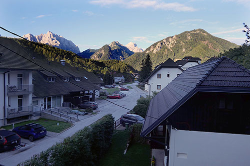 Nestrpljiv kad ćemo već jednom krenuti do tog Vršiča, zumirao sam masiv na gornjem snimku pretpostavljajući da je prijevoj kojemu danas težimo „tamo negdje“.