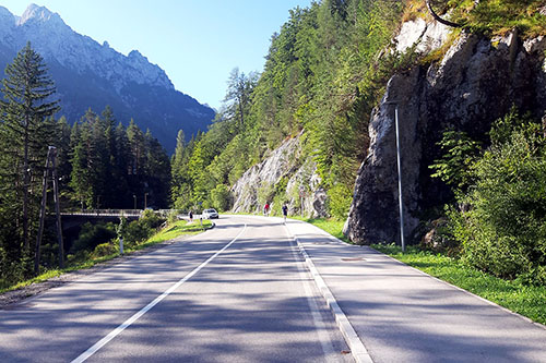Već pri napuštanju zadnjih kuća Kranjske Gore cesta je odmah krenula uzbrdicom, no toliko blagom da je bila jedva primjetna.