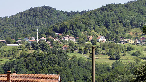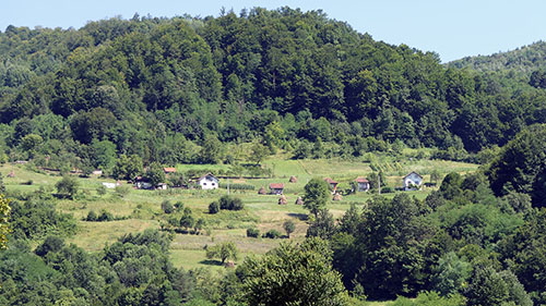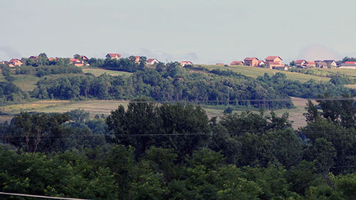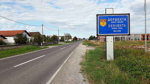 Nekih 5-6 km prije Dervente zaustavio sam se i radi predaha, a i radi snimanja udaljenog reda kuća na brdu s desne strane. Negdje među njima sam provodio svoje djetinjstvo.